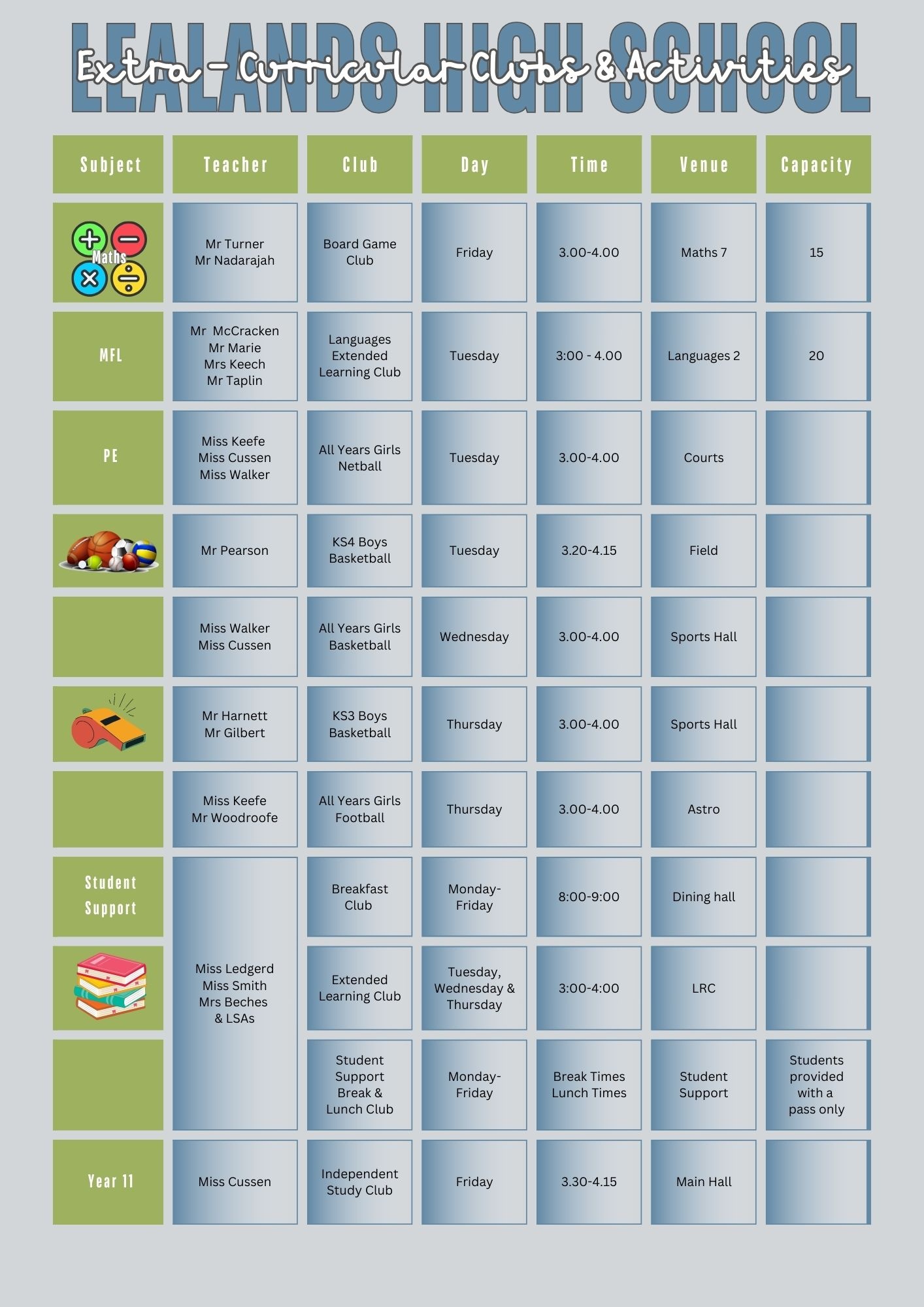 Clubs and Extra Curricular Activities