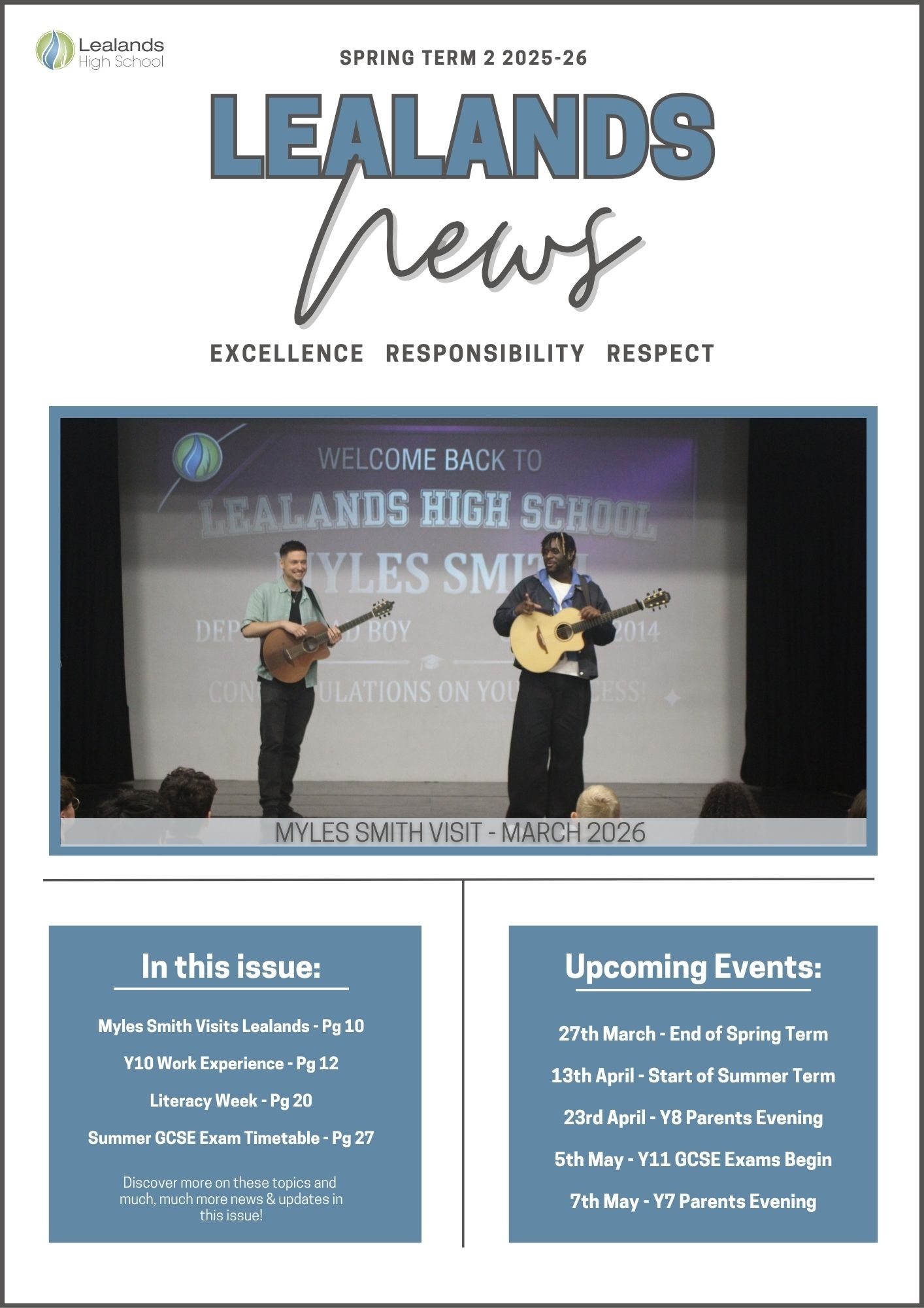 Lealands News is our online, half-termly school newsletter. Each edition includes an insightful introduction from our Headteacher and is full of news stories that celebrate what our students and staff have achieved over the half-term. There is also lots of important information and updates about the school and details of upcoming events.